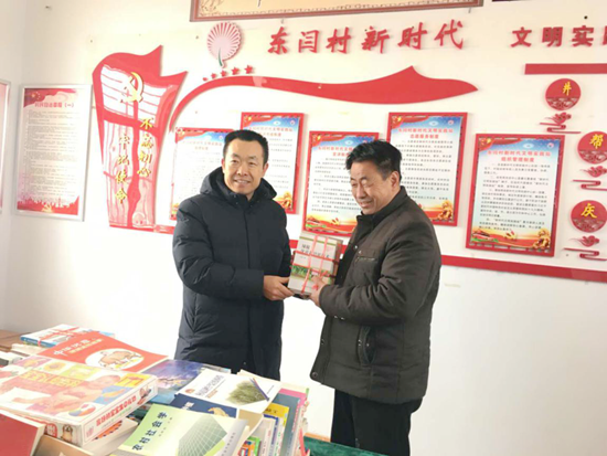 在东闫庙村村部,刘爱军同志听取了第一书记帮扶工作汇报,并为该村孔子学堂捐赠图书。刘爱军同志指出,中国孔子基金会秘书处在完成省委省政府赋予的扶贫工作中,必须积极发挥自身优势,努力在文化扶贫、扶智方面发挥基金会的文化职能,作出实效。