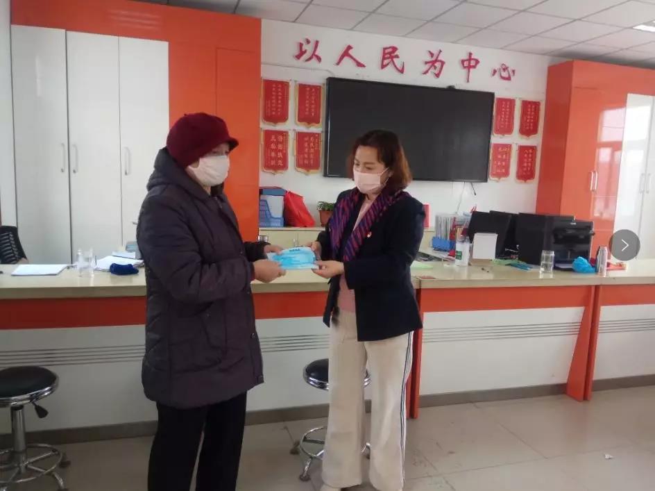 团甲16社区的老党员刘桂兰为奋斗在一线的工作人员送上口罩,为疫情防控工作人员送上自己的关怀