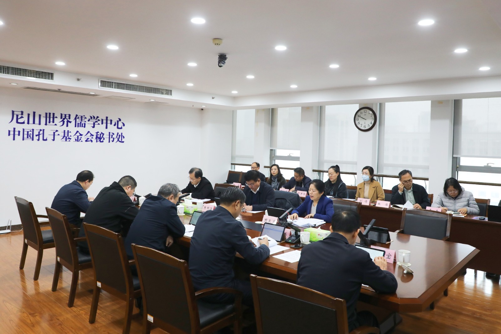 会议重温学习了习近平总书记在孔子研究院专家学者座谈会上关于大力弘扬中华优秀传统文化的重要讲话精神。儒学中心(基金会秘书处)领导班子成员围绕2023年分管工作和2024年工作思路举措作交流发言。