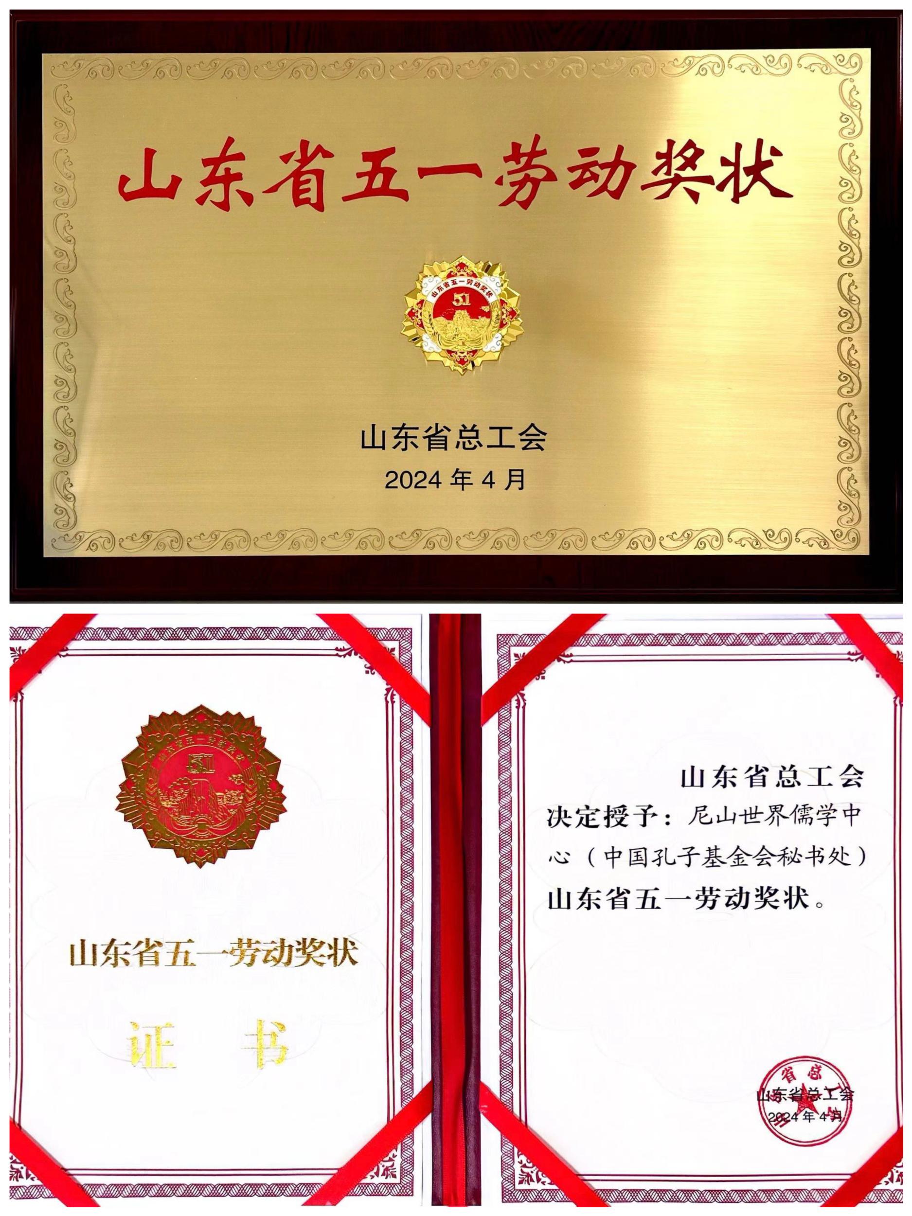 近日,山东省总工会公布山东省五一劳动奖状获奖名单,尼山世界儒学中心(中国孔子基金会秘书处)荣获2024年山东省五一劳动奖状。