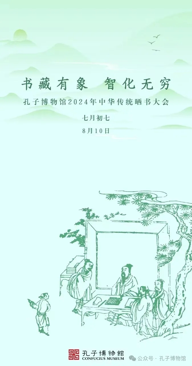 作为全国古籍重点保护单位,孔子博物馆致力于新时代馆藏古籍的保护、研究和活化利用,2019年至今,已成功举办六届中华传统晒书大会,成果丰硕,影响广泛。2024年8月10日,又是一年七夕节,孔子博物馆继续发扬中华晒书传统,积极响应国家古籍保护中心号召,以“书藏有象 智化无穷”为主题,拉开了本次中华传统晒书大会的帷幕。通过精品展览、多彩社教、交流研讨等一系列活动,传承和弘扬中华优秀传统文化,赓续中华文脉。