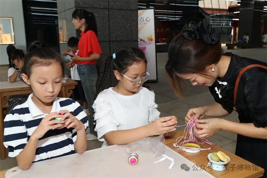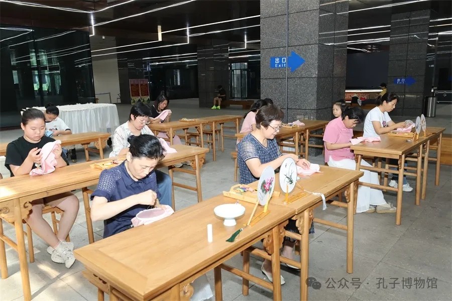 当“七夕”遇上“晒书节”,孔子博物馆开展了一系列丰富多彩的社教活动。依托耕织图和孔府旧藏刺绣文物,让耕织与刺绣奇妙融合,绣出农耕风情;讲述七夕美好传说,现场体验巧果制作,共度欢乐时光;一针一线巧成册,亲手制作一本线装书,感受古籍之美......社教老师通过趣味讲解和操作示范,让观众沉浸式学习文化知识,体验传统技艺。