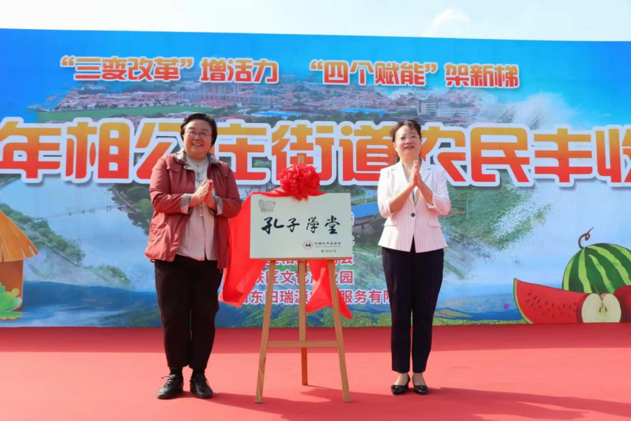 在第七个中国农民丰收节来临之际,为深入学习贯彻党的二十届三中全会精神,落实党中央和省委推进乡村文化振兴的战略部署,9月21日,济南市章丘区相公庄街道农民丰收节暨孔子学堂揭牌开班仪式,在相公庄街道泉韵乡居核心区广场隆重开幕。尼山世界儒学中心(中国孔子基金会秘书处)党委委员、副秘书长,孔子学堂推进委员会主任周静出席活动并为孔子学堂揭牌,省派第一书记和工作队驻章丘区牵头负责人、尼山世界儒学中心(中国孔子基金会秘书处)文献期刊部负责人张华,章丘区委常委、宣传部部长赵琳参加会议。