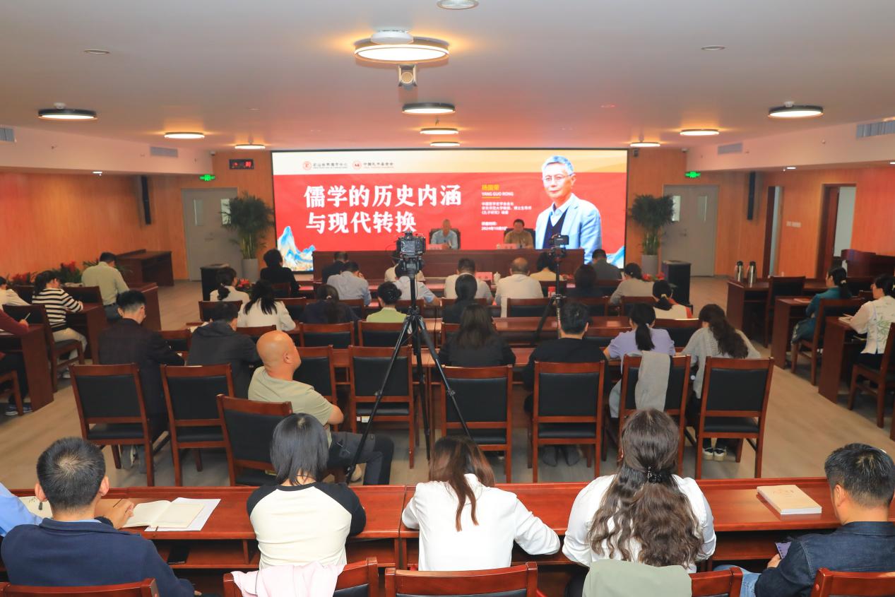 10月9日下午,尼山世界儒学中心(中国孔子基金会秘书处)孔子学堂首期学术公开课在山东济南文教大厦举行。中国哲学史学会会长、华东师范大学教授、《孔子研究》编委杨国荣应邀担任主讲嘉宾,以《儒学的历史内涵与现代转换》为题开讲。尼山世界儒学中心(中国孔子基金会秘书处)党委委员、副秘书长、孔子学堂推进委员会主任周静主持活动。
