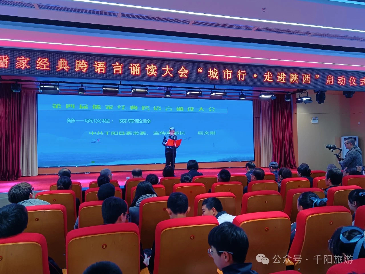 11月23日,由中国孔子基金会指导,宝鸡市孔子研究会、中共千阳县委宣传部、千阳县教育体育局、千阳县文化和旅游局主办的第四届儒家经典跨语言诵读大会“城市行·走进陕西”启动仪式在千阳县文化艺术中心隆重举行。