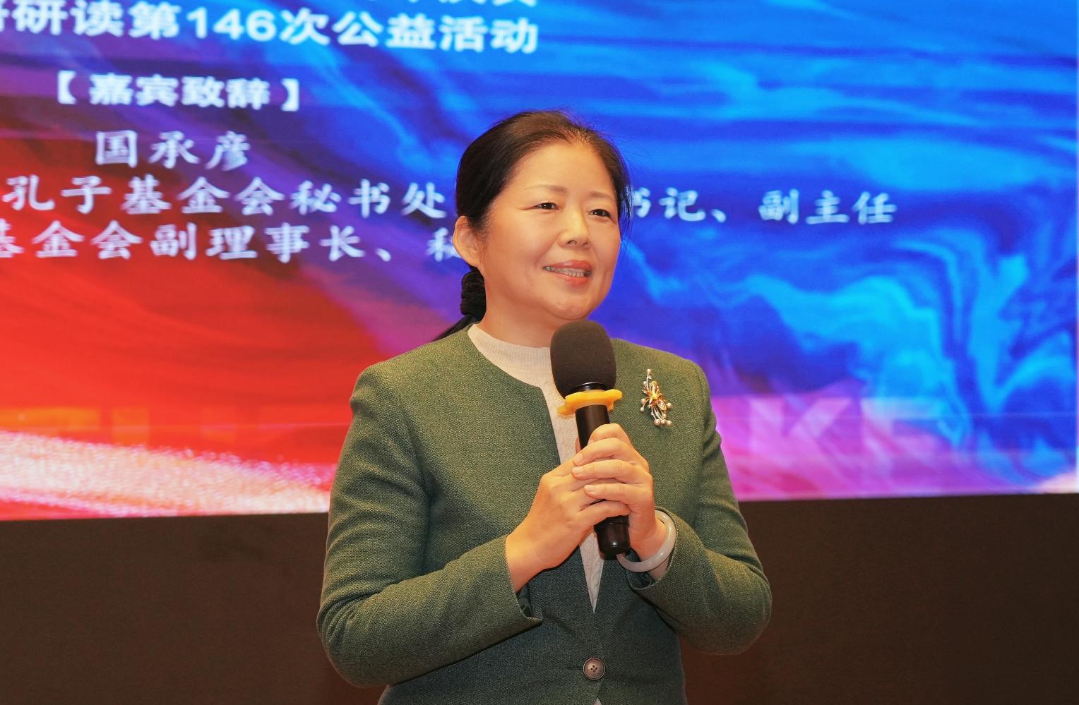 12月21日,齐鲁论语研读第146次公益活动在济南举行。尼山世界儒学中心(中国孔子基金会秘书处)党委书记、副主任、中国孔子基金会副理事长、秘书长、国际儒学联合会副理事长国承彦致辞,并赠送传统文化书籍。