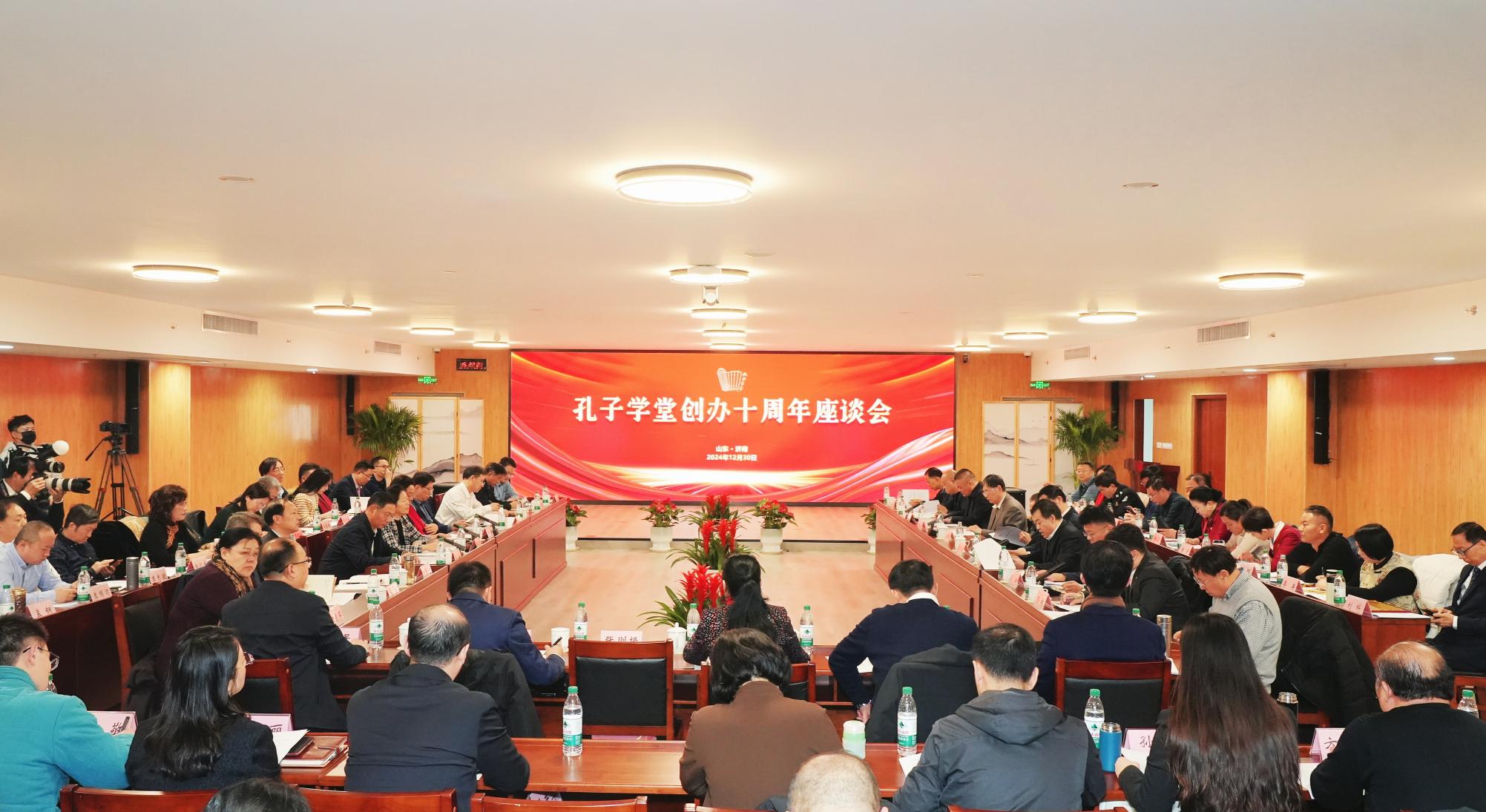 12月30日,孔子学堂创办十周年座谈会在济南举行。会议深入学习贯彻党的二十大和二十届二中、三中全会精神,贯彻落实习近平文化思想,坚持“两个结合”,推进文化“两创”,认真总结过去、展望未来、梳理经验、提炼智慧,为孔子学堂的发展进行顶层设计、谋篇布局。
