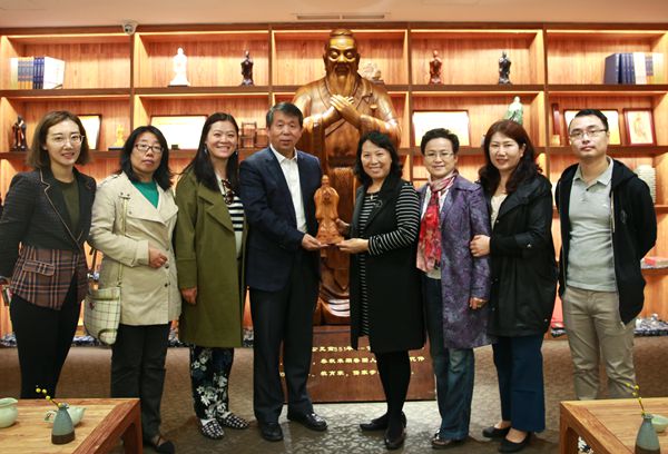 牛廷涛副理事长向郑晓梦会长一行赠送孔子像