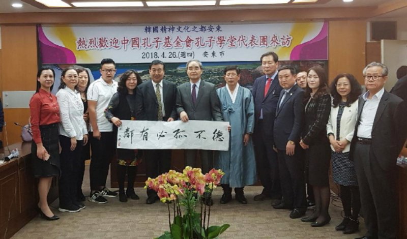 4月26日下午,中国孔子基金会海外孔子学堂研讨会代表团一行,来到韩国精神文化之都——安东,安东市副市长金东龙会见了代表团成员,并与代表团进行了座谈交流。