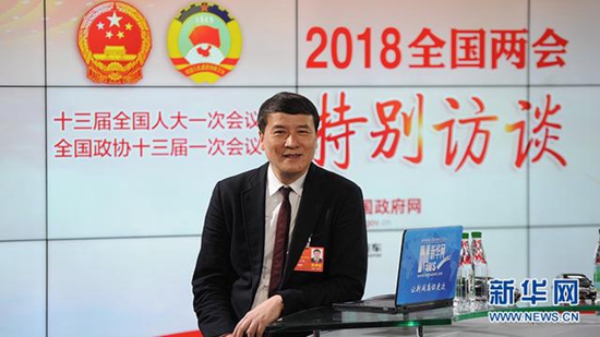 全国政协委员、中国艺术研究院研究生院常务副院长刘万鸣做客新华网2018全国两会特别访谈。新华网 李相博摄