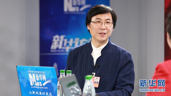 全国政协委员,中国文联副主席、中国美术学院院长许江做客新华网2018全国两会特别访谈。新华网 郭小天摄