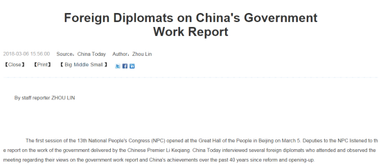 最全翻译整理!看各国驻华使节点赞政府报告