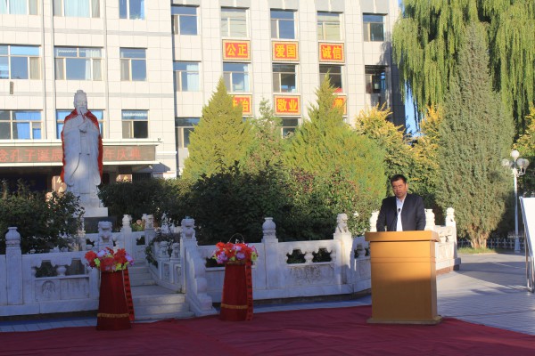 2018年9月28日上午 ,在张掖四中孔子广场举行纪念至圣先师孔子诞辰2569周年典礼,本次活动由副校长代友智主持。学校行政人员、初一年级师生、语文组教师等近800多人参加了典礼活动。