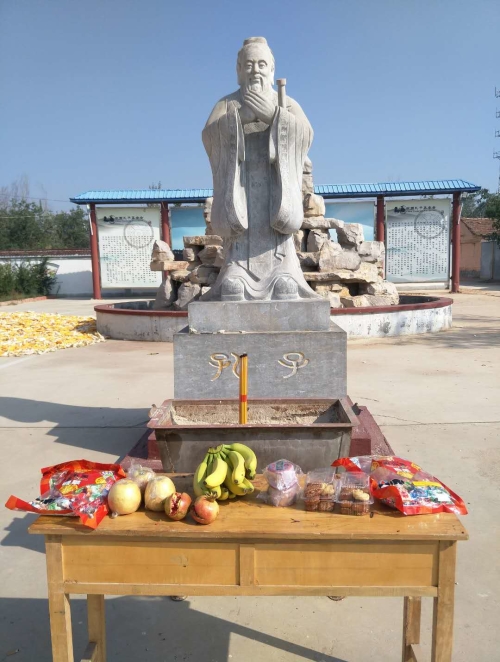 拐尔庄村的孔子文化广场上的孔子雕像