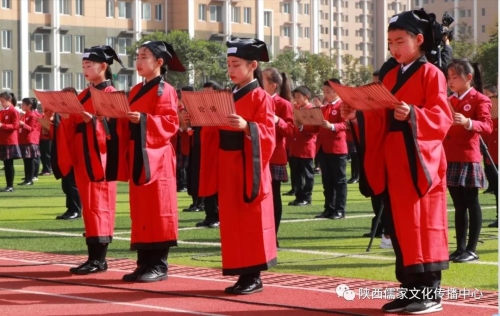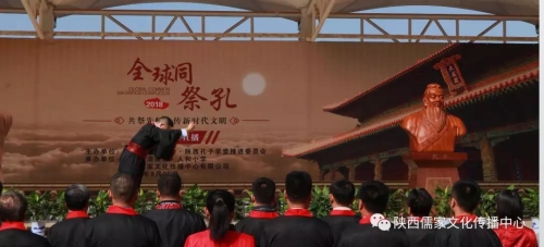2018年9月28日上午9时28分,为响应中国孔子基金会发起的2018全球同祭孔活动,陕西孔子学堂推进委员会在渭南市临渭区人和小学举办“2018全球同祭孔”纪念孔子诞辰2569周年活动。