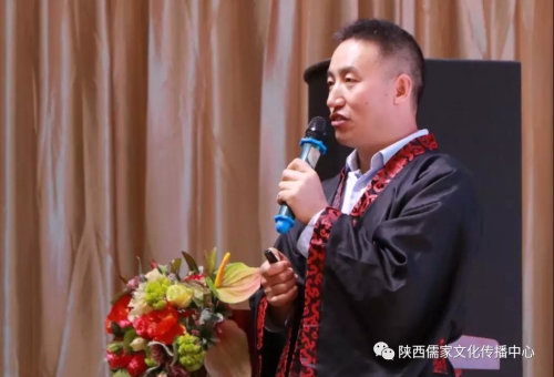 紧接着参会人员移步人和大讲堂,中国孔子基金会·传统文化教育委员会副主任·陕西孔子学堂推进委员会主任孙润来先生对中国孔子基金会、陕西孔子学堂及全球祭孔联盟进行了简单的介绍。同时他希望广大师生能够一起行动起来,让儒家文化传播更广,影响更深!