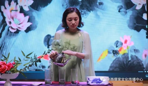 最后,全体师生共同聆听了武国权老师题为《亲近孔子——消除误解,了解真正的孔子》的国学讲座,观看渭南茶文化协会姜宁老师带来的茶艺表演。