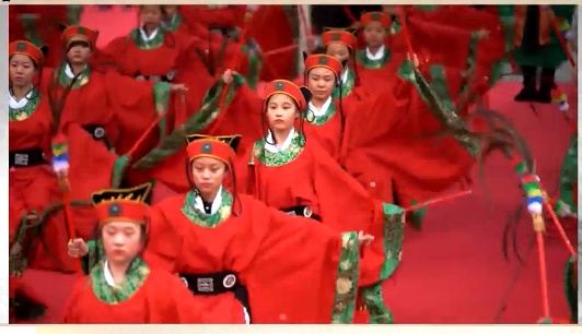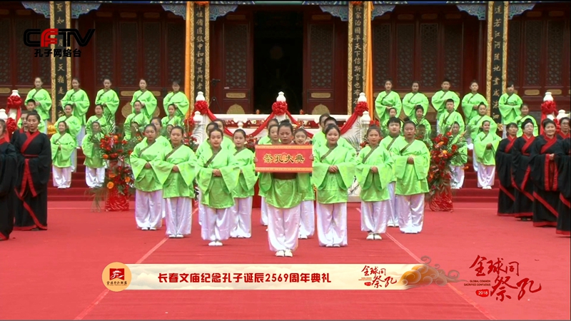 长春文庙祭孔仿明制释奠礼,身着明代服饰的舞生,手执龠和羽,在悠扬深沉的雅乐伴奏下,表演了八佾舞,舞蹈优美高雅,场面肃穆壮观,歌颂了孔子生前的光辉业绩。在乐舞的配合下,祭祀官向孔子献帛、献爵、读祝等祭祀环节。释奠礼之后,是经典吟诵和文艺表演环节。无论是经典吟诵,还是太极表演,都为我们展现了中华优秀传统文化的无穷魅力和永久生命力。