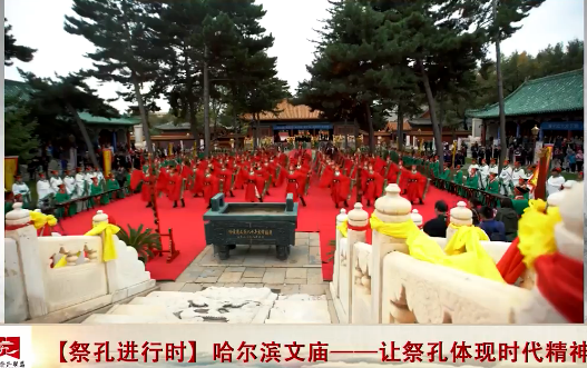 哈尔滨文庙作为东北地区最大的文庙,也是新中国成立以来最早举行公祭大典活动的孔庙之一。哈尔滨文庙是2006年首次举办祭孔大典的,2007年在仪式中加入了八佾舞的表演,至今已经经历了十二年。今年第一个显著变化,是群众和民间组织对祭孔大典关注度高、参与面广、自觉性更强。第二个亮点就是祭孔大典与国情、省情相结合,体现时代精神。