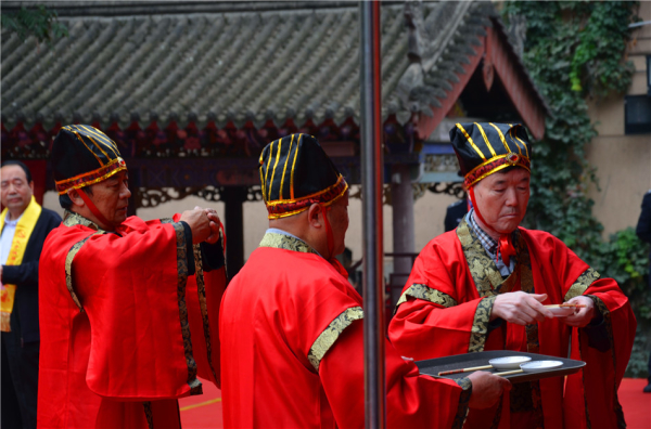 9时50分,市委常委、秦州区委书记雷鸣宣布祭孔典礼仪式开始