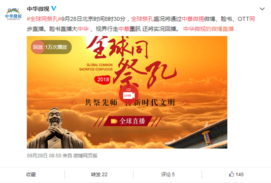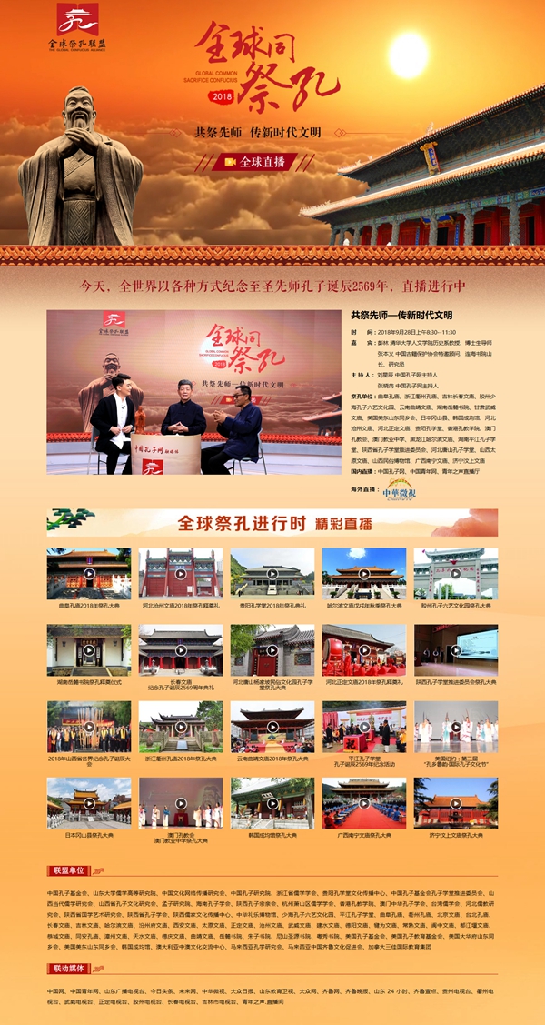 中国孔子网发挥融媒体优势在网站、客户端、微博、微信、头条号等各个平台同时进行视频、图文直播,多媒体、多形式、多角度、全方位报道“2018全球同祭孔”盛况。