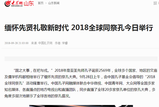 2018全球同祭孔C位亮相!各大媒体都在报道
