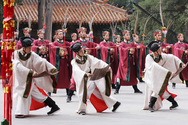 过去文庙每年都要举行祭孔大典。至迟在北魏孝文帝时政府已开始正式祭礼孔子,后来的隋文帝还创制了祭奠孔子的专用乐章。以后各朝代的歌词略有变化,舞蹈也会有些许不同,但有一点相同的是,祭祀时要奏乐、唱歌、每句歌词还配合一定的舞步。