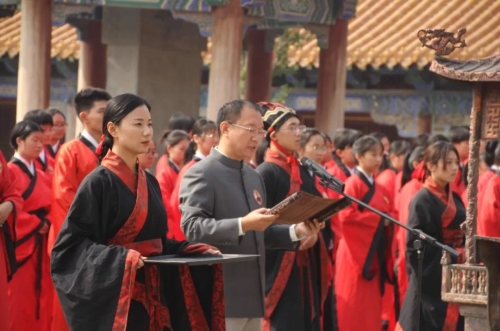 维公元2018年9月28日,吾等山东济南人士敢昭告于大成至圣先师,谨备时蔬玄酒,雅乐升舞,恭奠于济南文庙大成殿下,肃拜追远,上达夫子暨诸位先哲先贤。