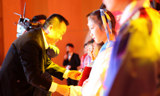 刘爱军为“十佳吟诵传习人”(青少年组)颁奖。李焕鹏 孙保粮/摄