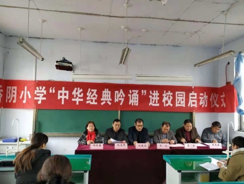 11月6日上午,由新泰市龙廷镇岙阴小学主办的“中华经典吟诵”进校园活动正式启动。教育局刘建玉主任出席“中华经典吟诵”启动仪式,参加本次启动活动的还有龙廷镇教育办公室史主任,新泰市经典吟诵专家冯迎春老师和岙阴小学全体教师。
