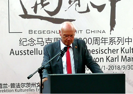 2018年既是卡尔·马克思诞辰200周年,也是中国改革开放40周年,为了向马克思诞辰200周年献礼,向我国改革开放40年历程致敬,今年6月起,“遇见中国——纪念马克思诞辰200周年系列文化展”在特里尔陆续开展。系列文化展由中国人民对外友好协会、德国莱茵兰-普法尔茨州文化遗产保护与研究总局和德中友好协会联合会共同主办。
