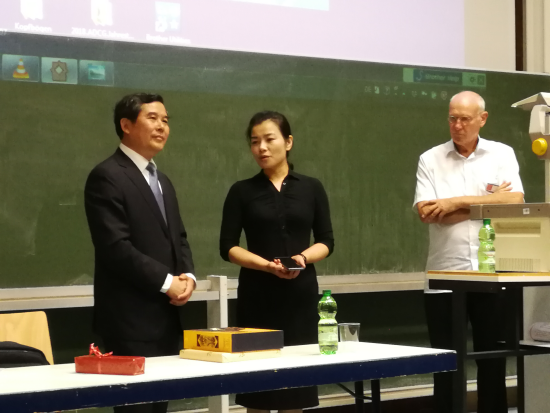 报告会由德中友好协会联合会、美因茨-威斯巴登德中友好协会主席库尔特·卡斯特(右一)主持