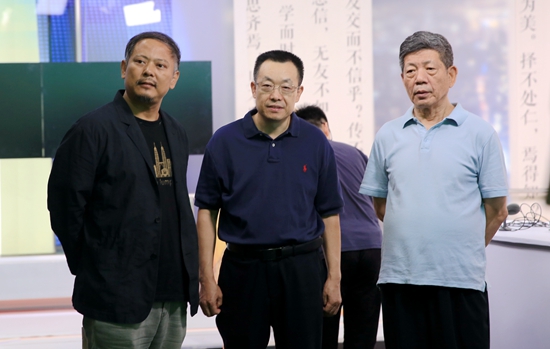 刘爱军秘书长(中)、彭林先生(右)、石立善先生(左)在祭孔直播准备现场
