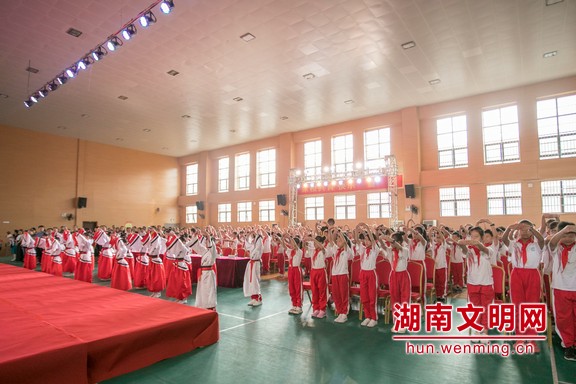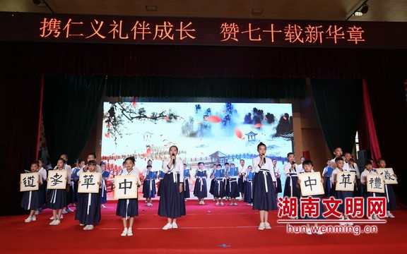 9月27日,长沙市“文明校园”创建系列活动之“携仁义礼共成长 赞七十载新华章”孔子诞辰纪念活动在岳麓区第二小学举行。图片来源:湖南文明网 记者 彭团 摄