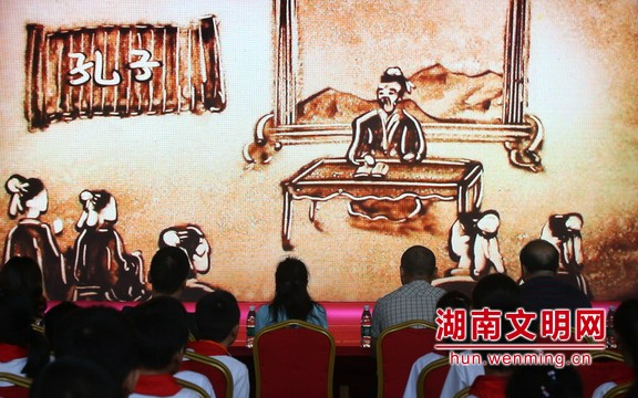 沙画秀让观众更“懂”孔子。图片来源:湖南文明网 记者 彭团 摄