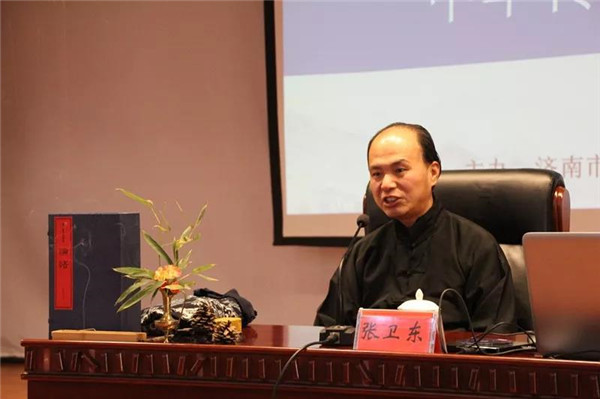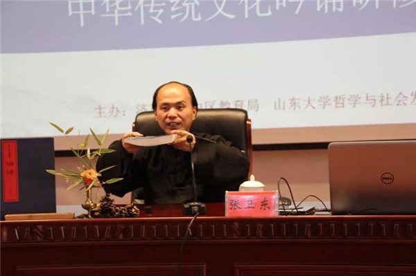 古文诗词吟诵家张卫东先生在“市中区教育局中华传统文化吟诵高级研修班”授课现场