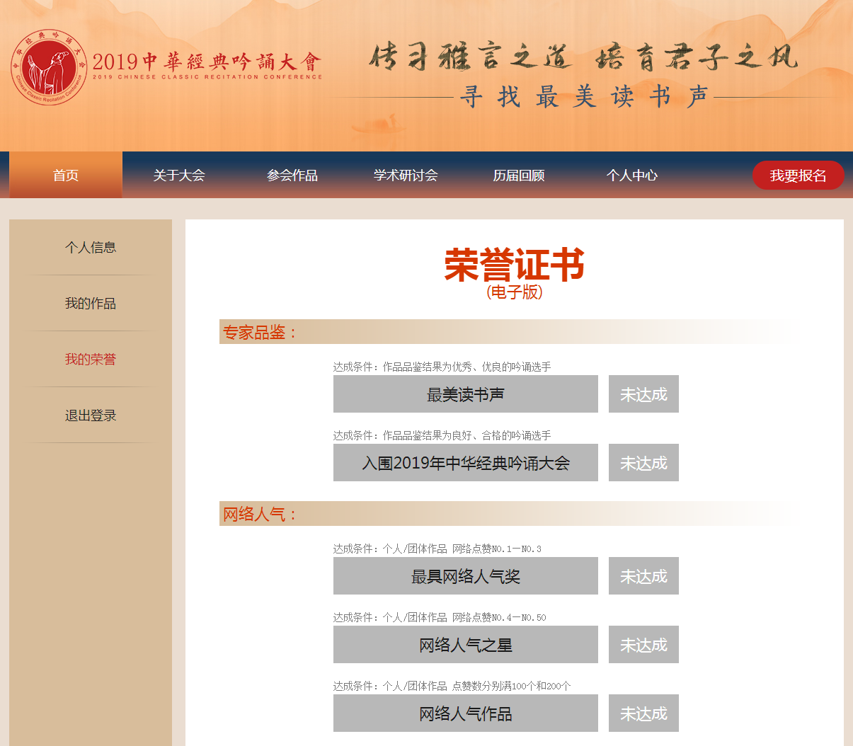 参会选手可在“个人中心—我的荣誉”中查询并下载证书。