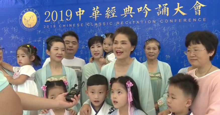 安徽淮南有这样一家人,互敬互爱,十分温馨,最年长的69岁,最小的两岁三个月,他们组团来参加吟诵大会。他们说所谓诗书继世长,吟诵,让我们非常快乐的诵读经典,让我们的家庭充满了书香。