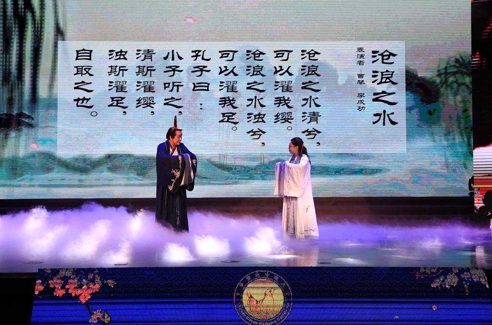 下面请欣赏闭幕式吟诵节目图集——由湖南省吟诵学会副会长兼秘书长曹琴和李成功老师带来的《沧浪之水》。