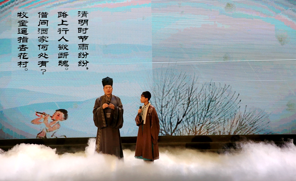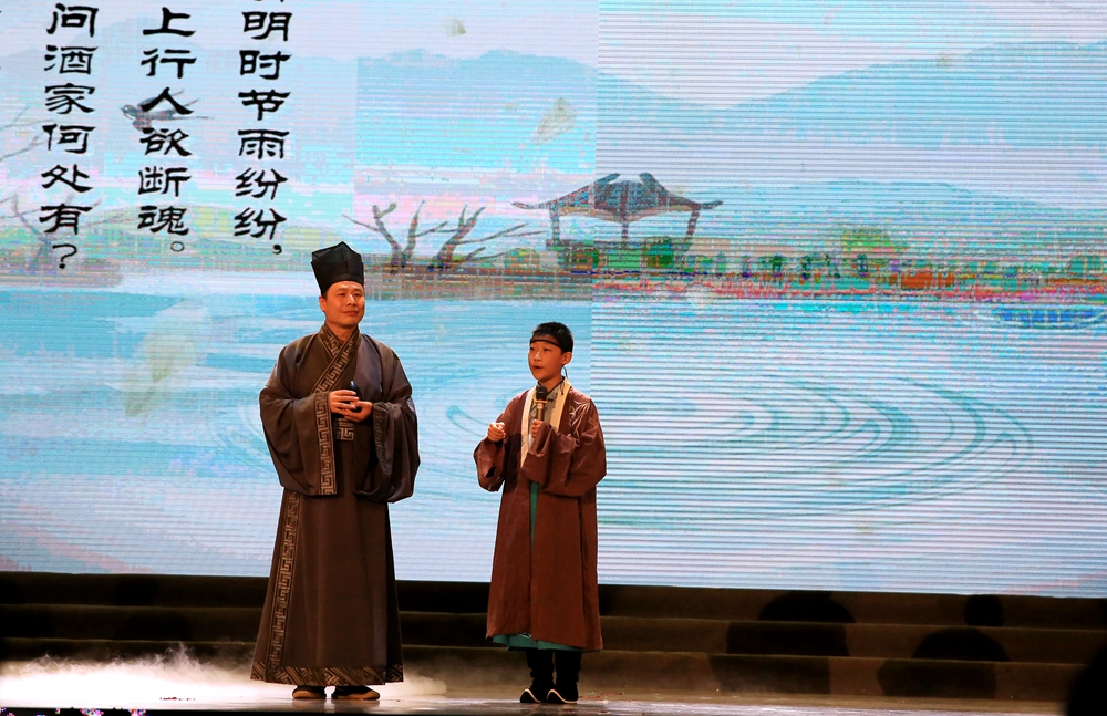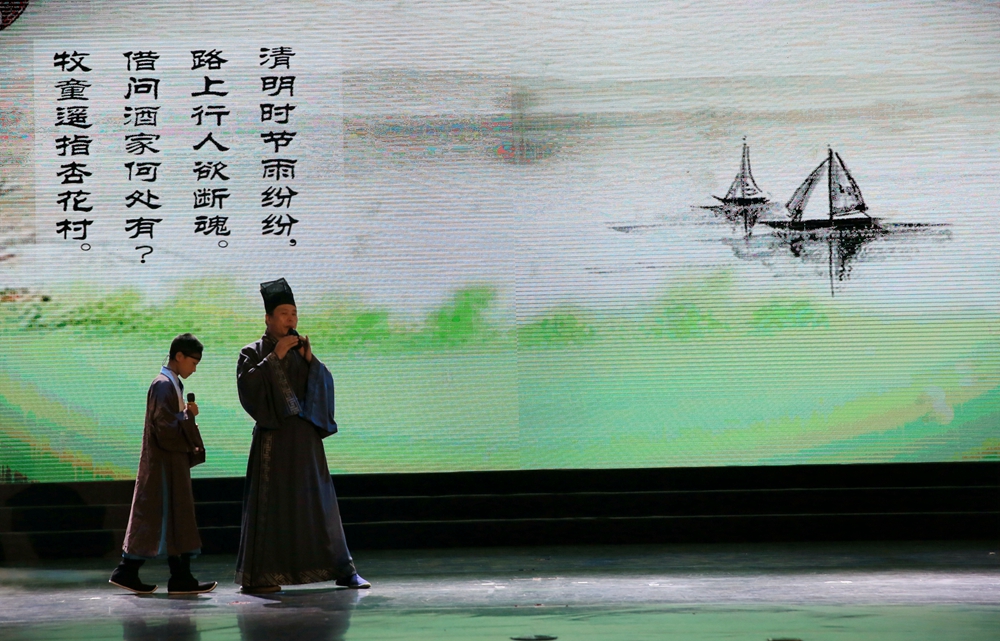 下面请欣赏闭幕式吟诵节目图集——由湖北襄阳市吟诵学会会长乔焕军先生为我们吟诵杜牧的《清明》,一起在经典诗词声中追忆老先生。