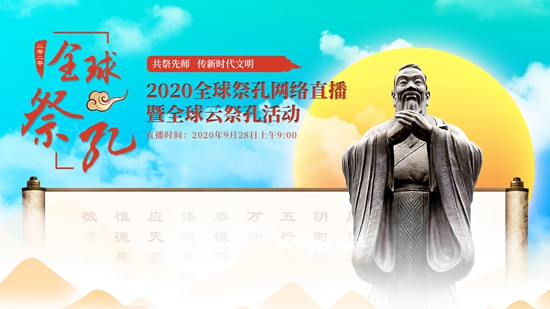2020年9月28日,值至圣先师孔子诞辰2571周年。中国孔子基金会将联合济宁市文化传承发展中心共同举办“共祭先师 传新时代文明——全球祭孔网络直播暨全球云祭孔活动”。海内外多家孔庙(文庙)、儒学机构、孔子学堂共同参与,直播活动将通过中国孔子网融媒体、中国青年网·青年之声、大众网·海报新闻、中华微视全程直播。