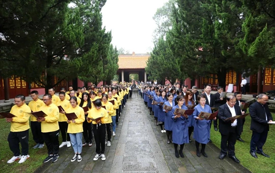 弘扬尊师重道精神,引导学子见贤思齐。9月28日上午,湖南大学岳麓书院一年一度的祭孔大典在文庙举行,纪念至圣先师孔子诞辰2571年。大成殿前,全体与祭人员庄严肃立,怀至诚至敬之心向孔子像行鞠躬礼。
