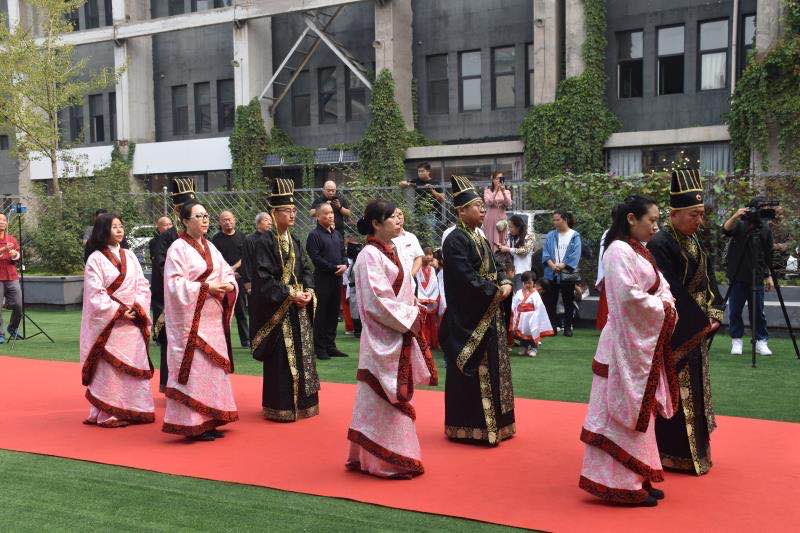 在这个特殊的时期,伟大的党和祖国,万众一心,共克时坚,成功破疫。此次微型祭孔典礼,虽约束了前来现场参加祭孔典礼的人数,却挡不住我们无量的敬畏和感恩之心,也更加显现吾辈共同缅怀先师洪恩之心。祭孔现场,庄严肃穆,有主祭人,陪祭官,亚祭人,领导,孩子,家长,老师……我们一起怀着感恩,恭敬和敬畏之心,挂国旗,唱国歌,并向孔子献礼,献帛,献爵,献花……我们一起诚意正心,束带庄严,共诵论语和孝经,共同祭拜先师和孔子,行五拜礼。