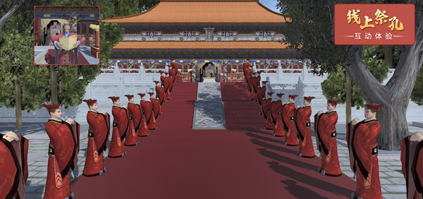 中国孔子网还特别开设“线上祭孔我参与”平台,采用虚拟现实技术手段,重现古代祭孔场面。平台由国内权威礼乐专家指导,模拟还原了“就位、整理衣冠、肃立、迎神、读祝、诣盥洗所、献花、上香、送神、礼成”十个祭孔流程,人们可以通过互动点播在虚拟现实中完成祭孔,感受一场规范隆重、庄严肃穆的仪式,以表达对孔子的感念与尊崇。同时平台还设置有“送鲜花、献爱心、共祈福”等互动形式。