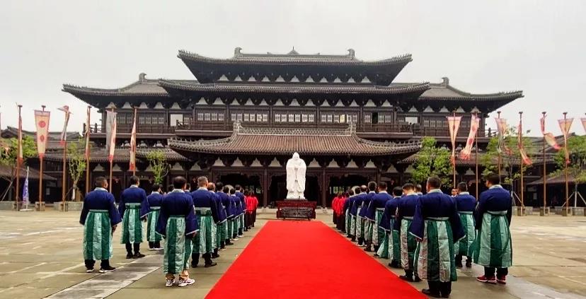 祭孔典礼现场,大家身着传统服饰,庄严肃穆地列队于孔子像前方两侧。击鼓、启扉、鸣炮,伴随着一声悠长的颂唱声,释奠礼正式开始。
