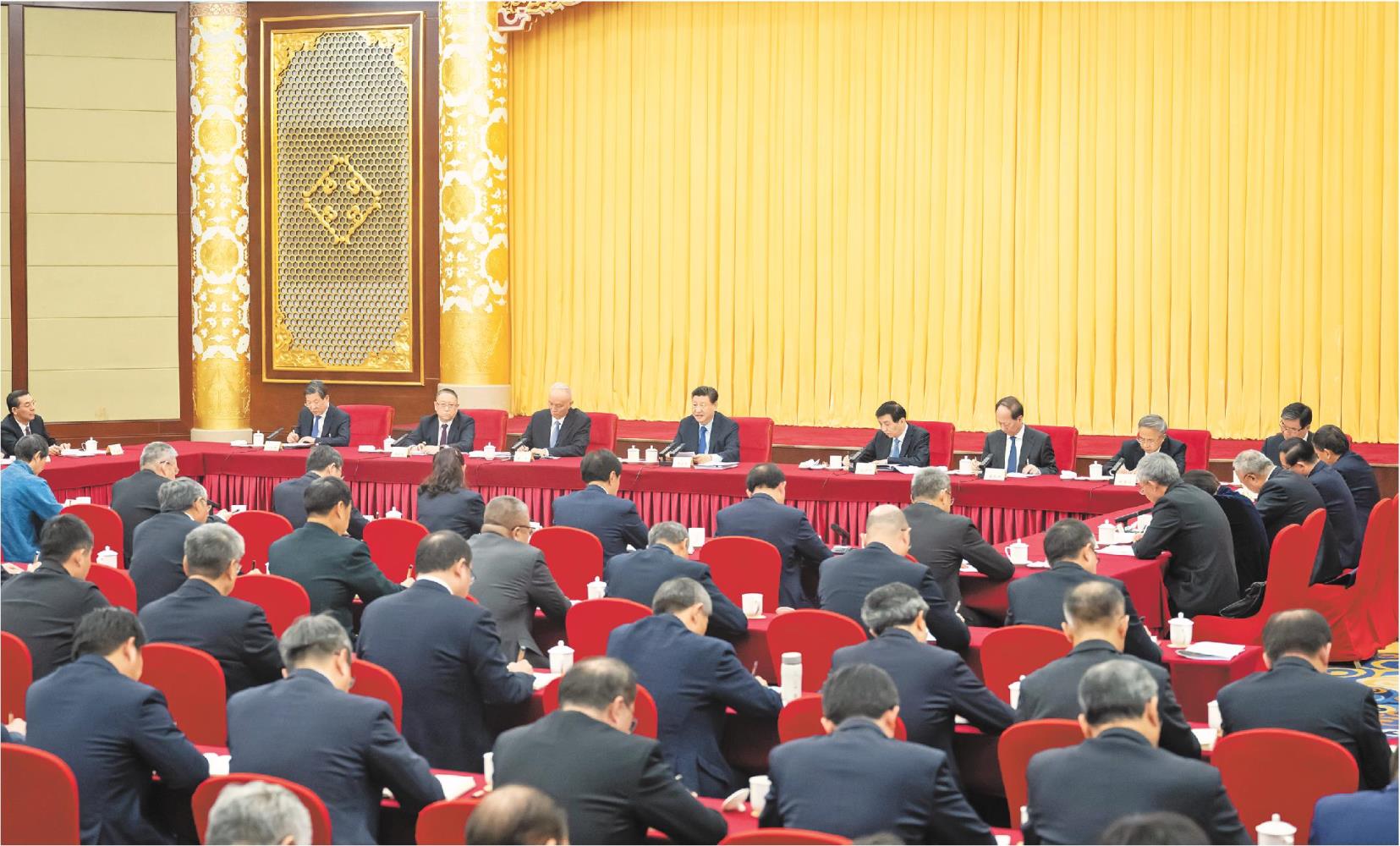 中共中央政治局常委、全国政协主席王沪宁,中共中央政治局常委、中央办公厅主任蔡奇参加看望和讨论。