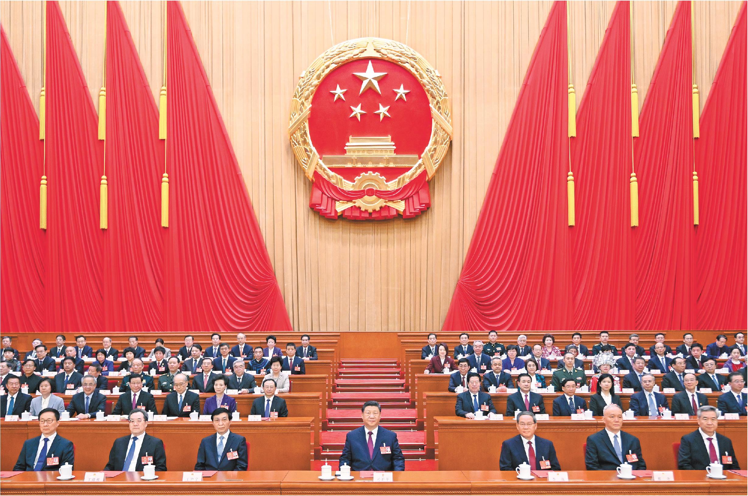 3月11日下午,第十四届全国人民代表大会第三次会议在北京人民大会堂闭幕。党和国家领导人习近平、李强、王沪宁、蔡奇、丁薛祥、李希、韩正等在主席台就座。□新华社记者李学仁报道