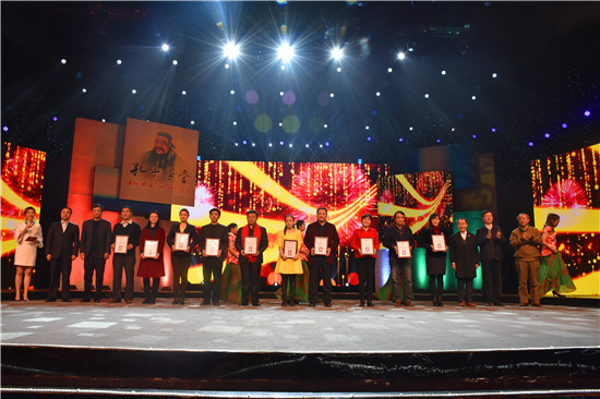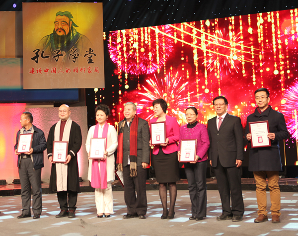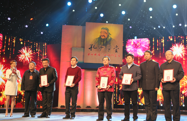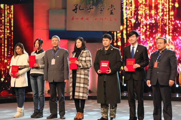 山东省文明办专职副主任王少杰、山东省社科联党组书记林建宁、共青团山东省委书记张涛、山东广播电视台副台长潘士强、为十佳孔子学堂颁奖。
