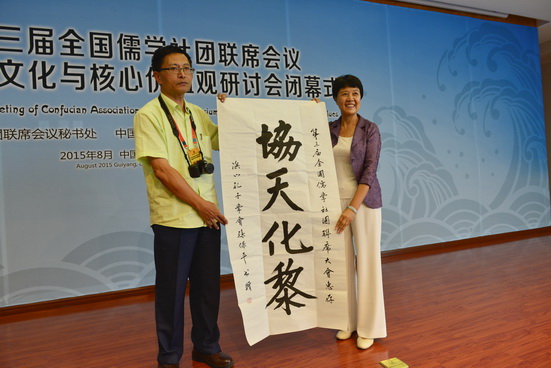 澳门中华孔子学会会长孙保平向贵阳孔学堂赠字