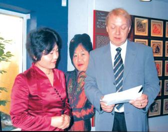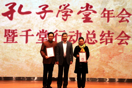 中国孔子基金会副理事长邢成湖为卢雪、阴军颁发孔子学堂文化大使证书
